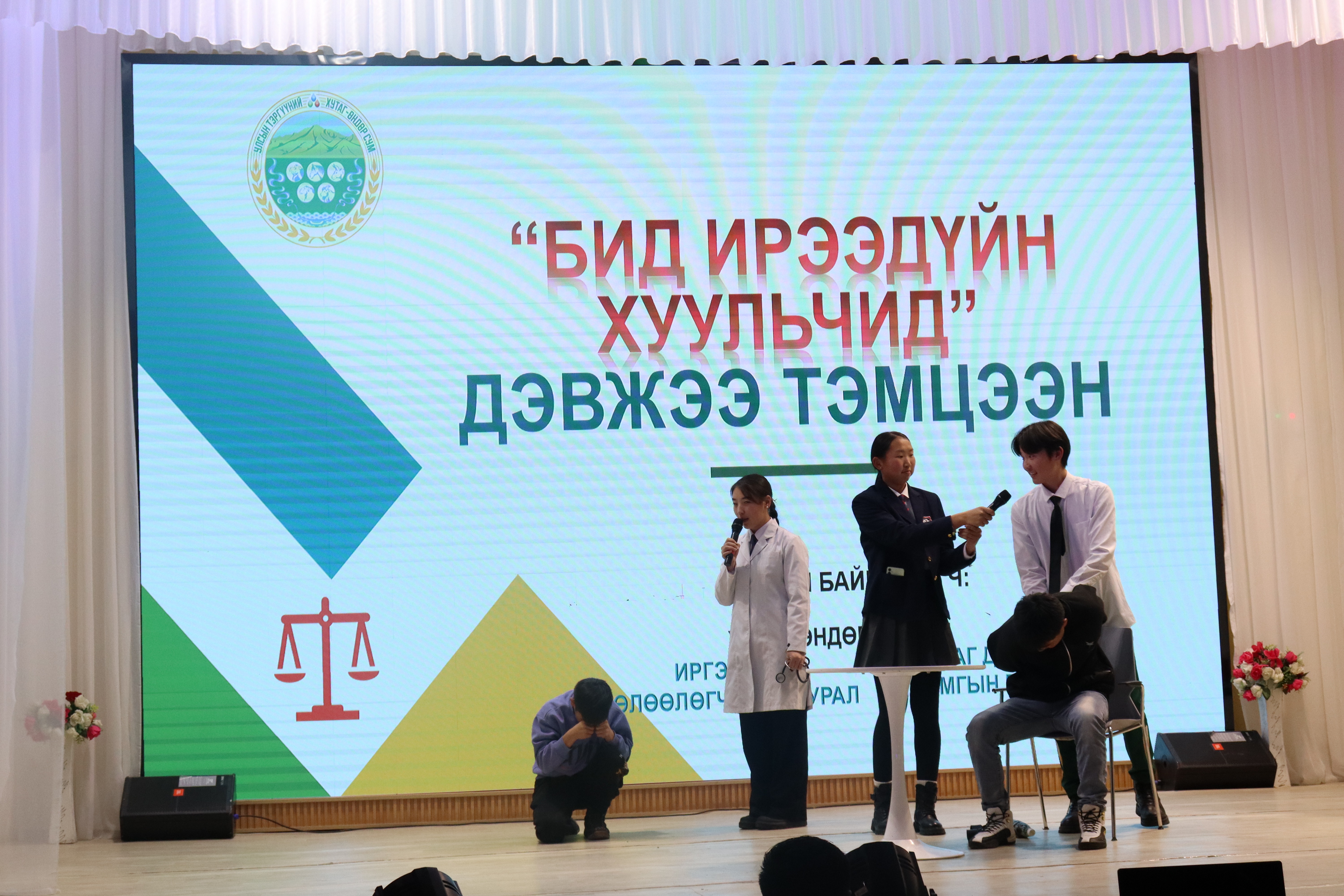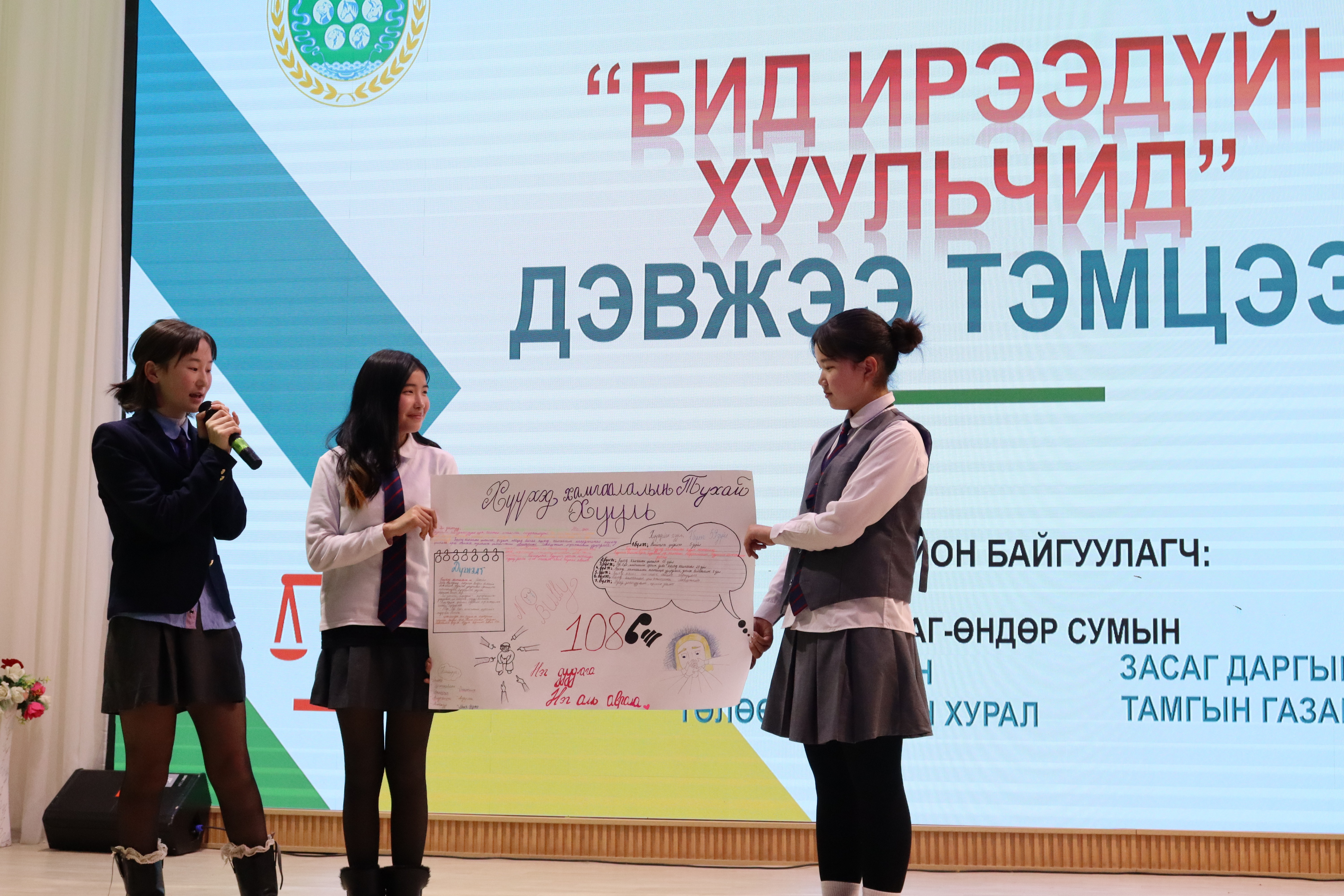 Улс тунхагласны баярын өдөр, Гэмт хэргээс урьдчилан сэргийлэх зохицуулах зөвлөлийн 60 жилийн ойн хүрээнд Булган аймгийн ерөнхий боловсролын сургуулиудын сурагчдын хууль эрх зүйн мэдлэгийг дээшлүүлэх түүгээр дамжуулан эцэг эхчүүдэд хуулийн талаарх ойлголт мэдлэгийг өгөх, олон нийтэд сурталчлах, түгээн дэлгэрүүлэх зорилгоор Хутаг-Өндөр сумын ерөнхий боловролын сургуулийн ахлах ангийн сурагчдын дунд "БИД ИРЭЭДҮЙН ХУУЛЬЧИД" дэмжээ тэмцээнийг амжилттай зохион байгуулалаа. Энэхүү тэмцээнд 5 багийн 35 сурагч оролцсоноос: