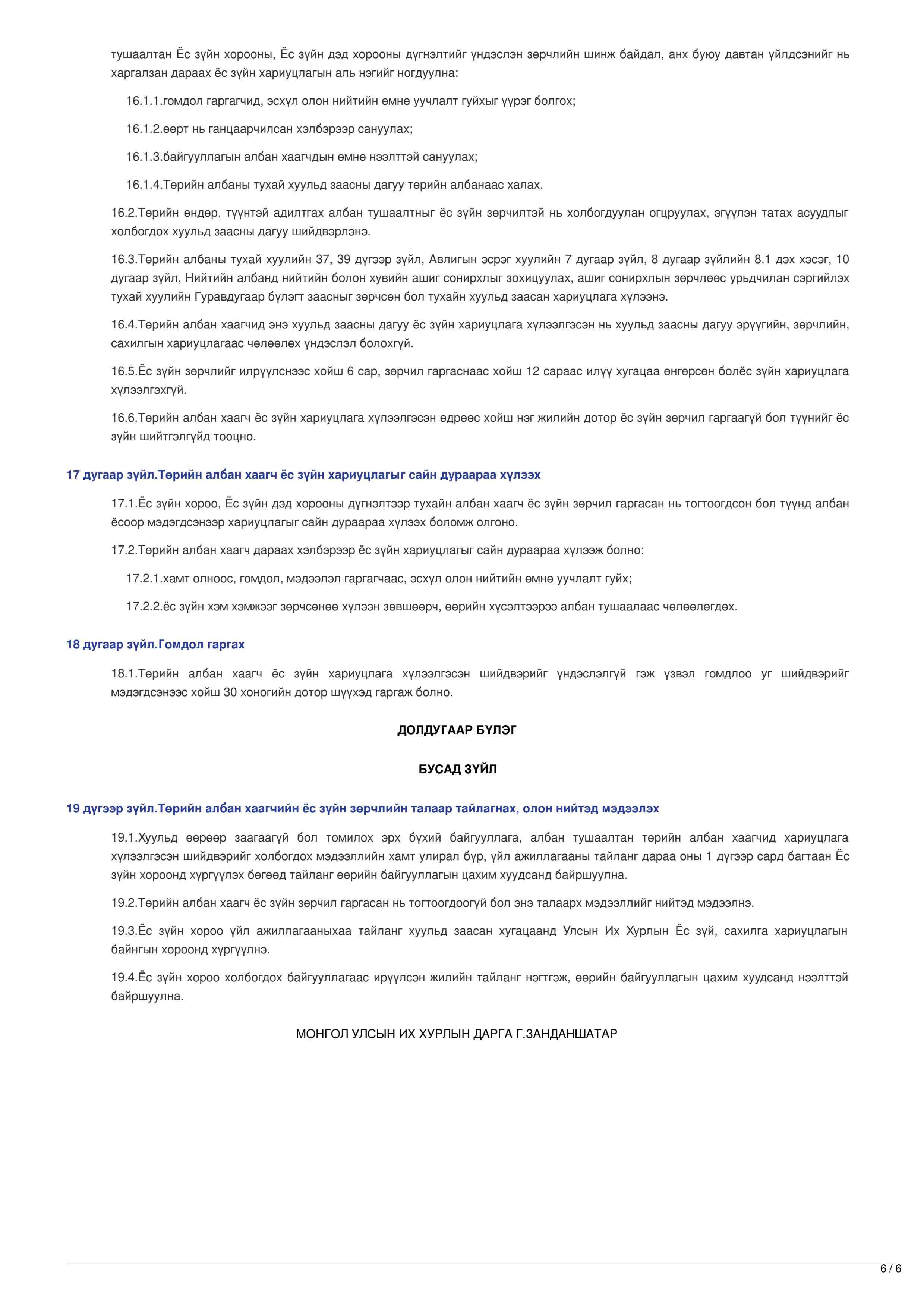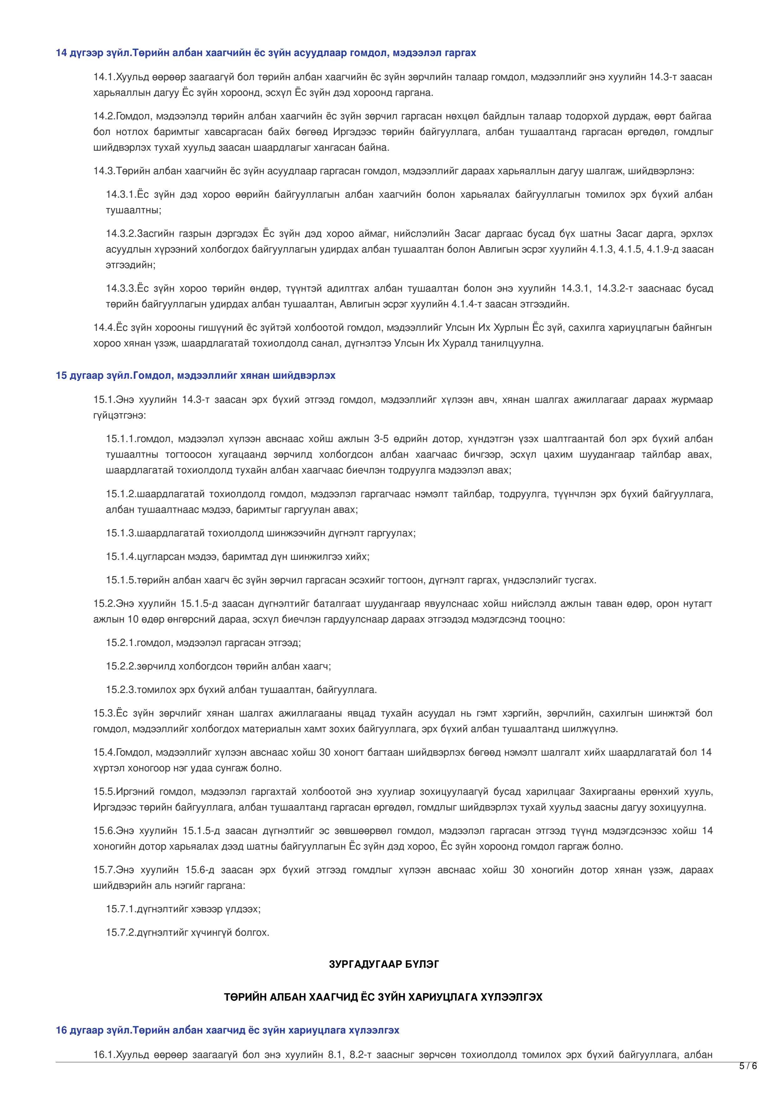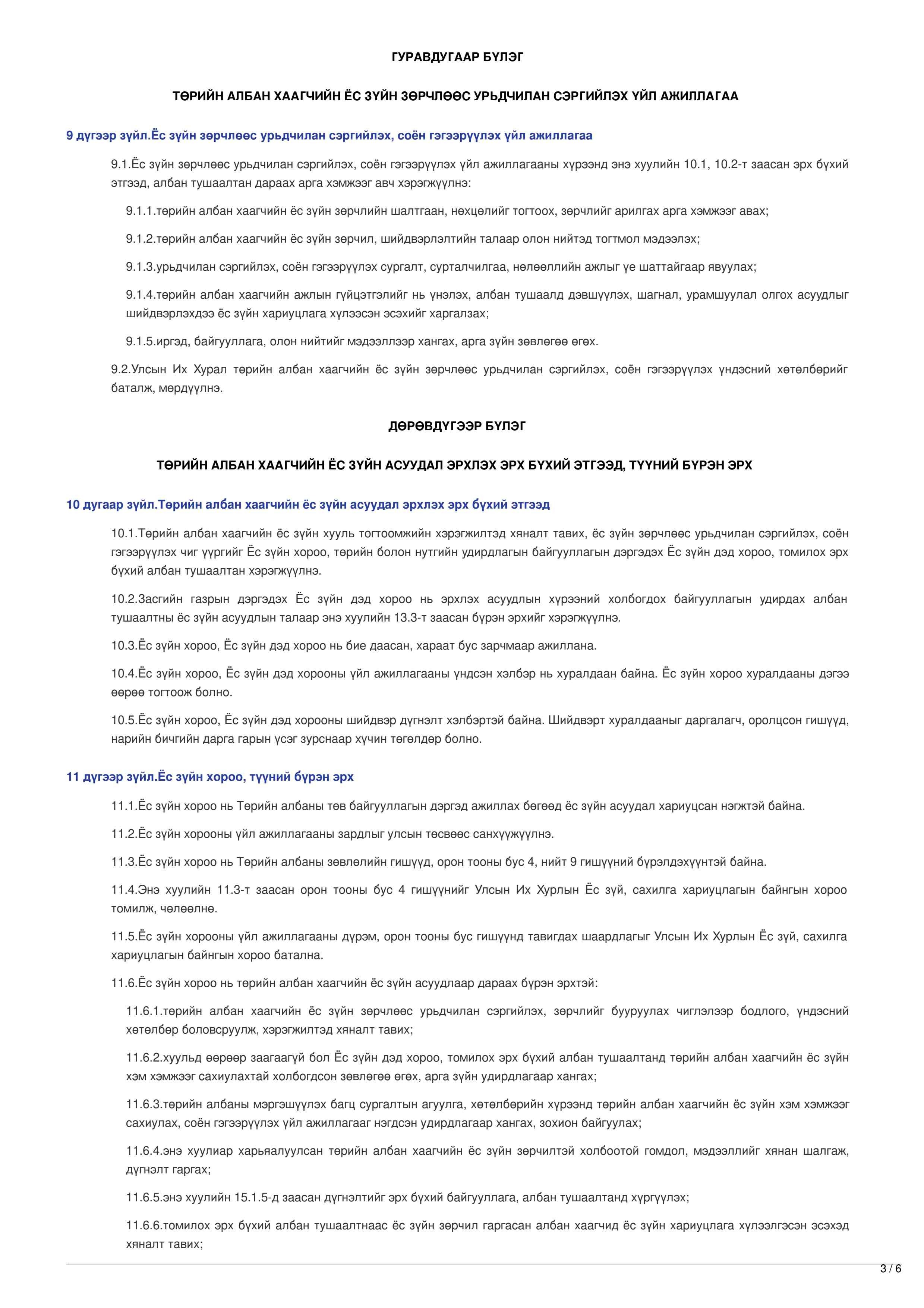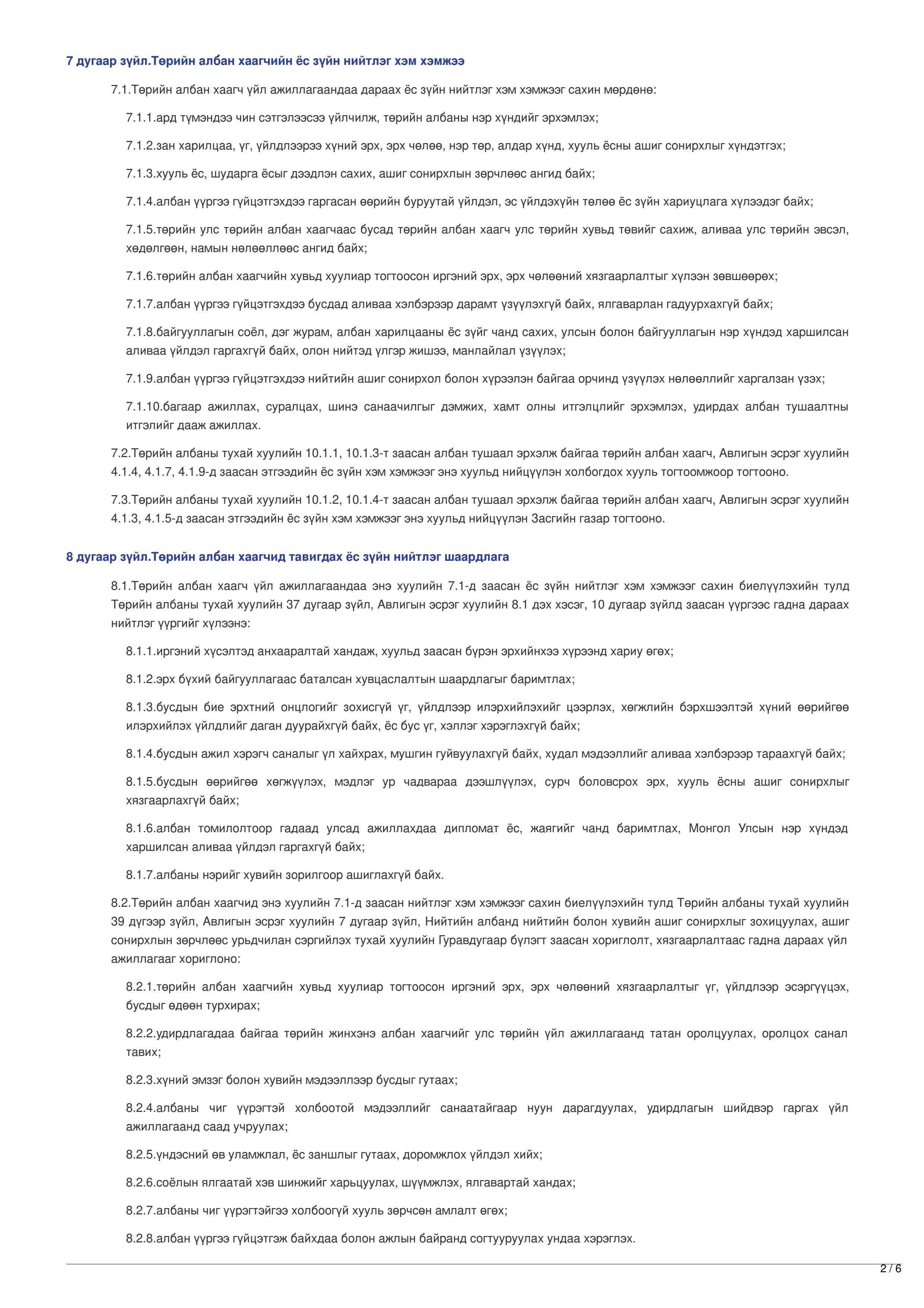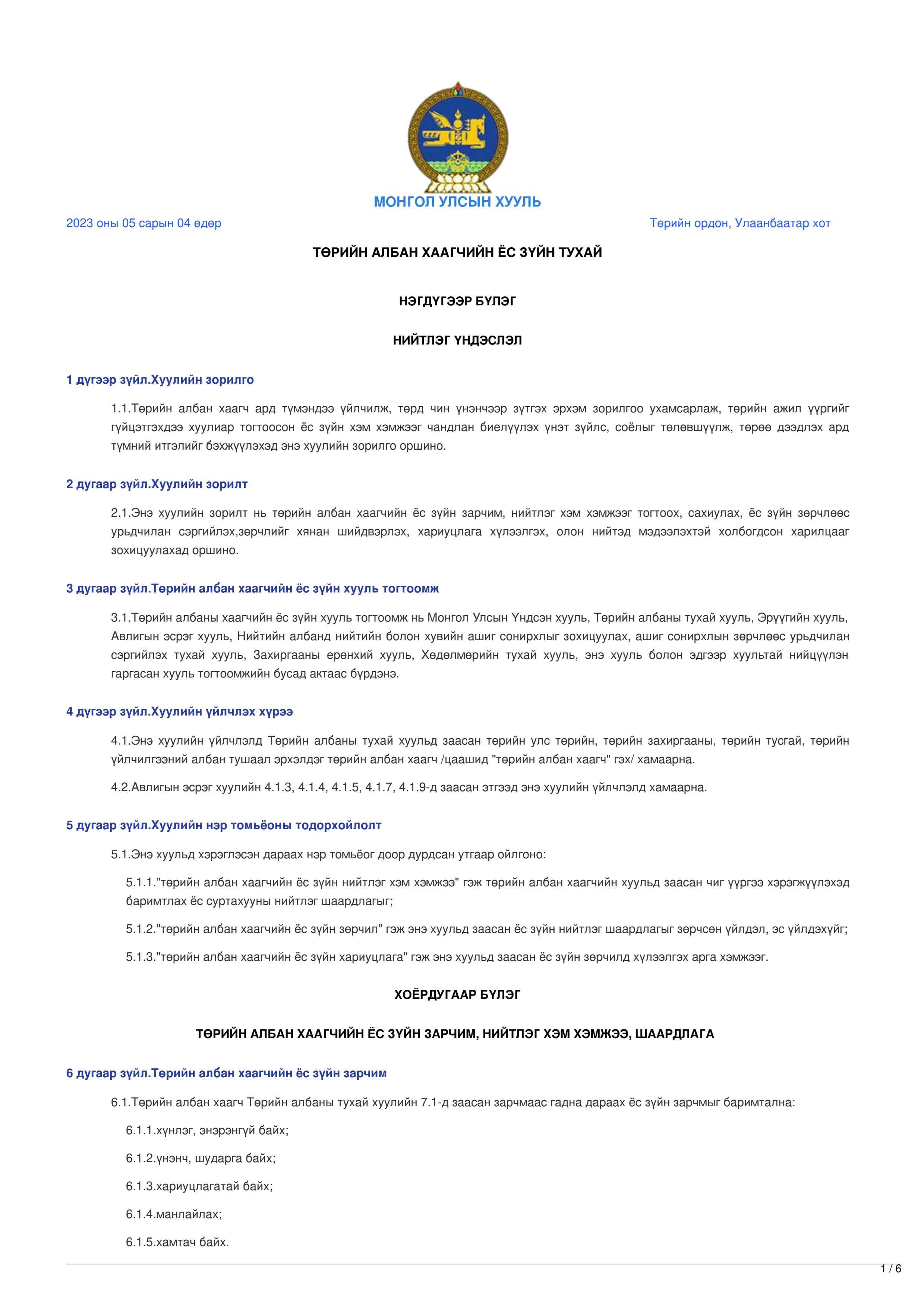 ТӨРИЙН АЛБАН ХААГЧИЙН ЁС ЗҮЙН ТУХАЙ