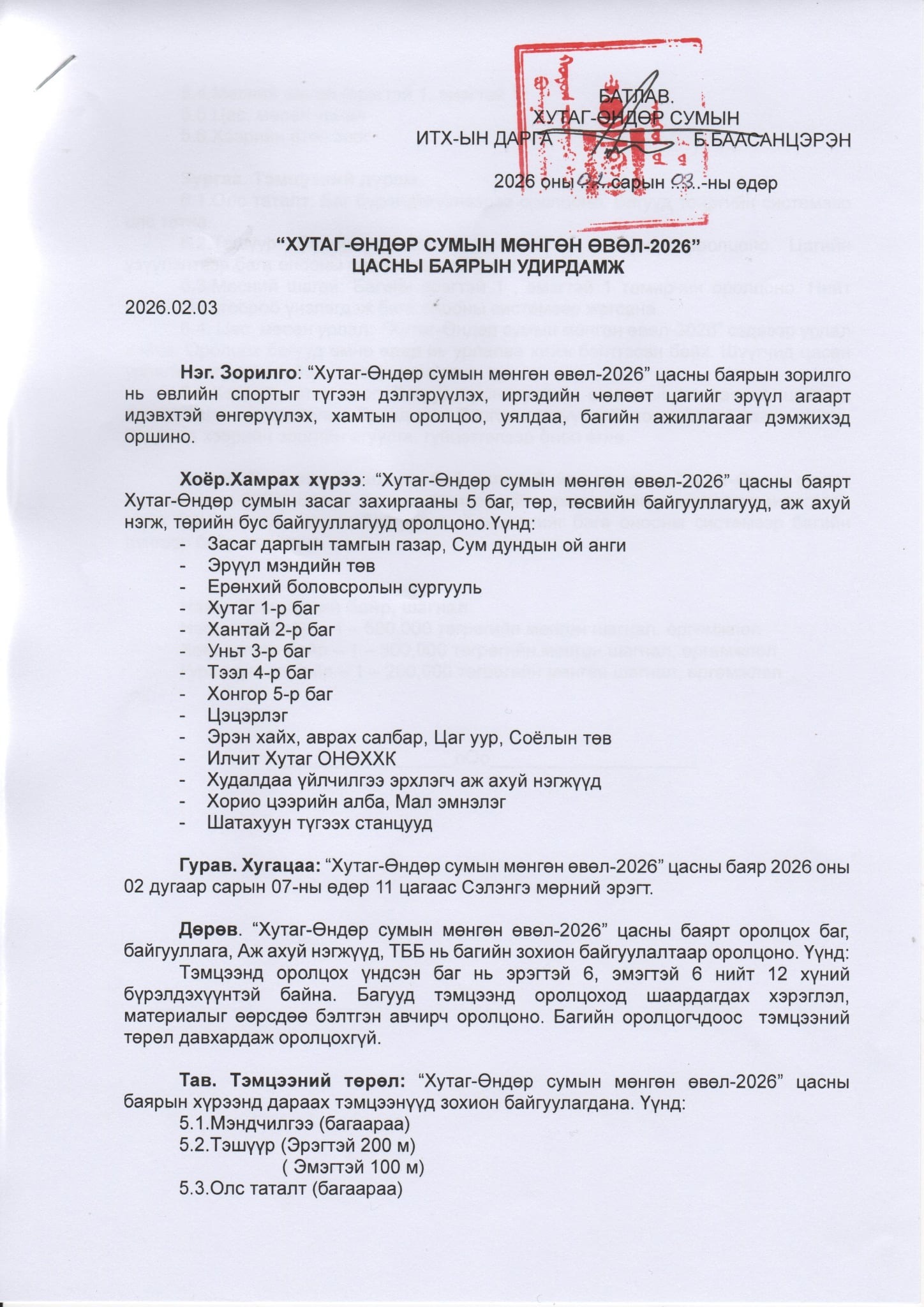 "ХУТАГ-ӨНДӨР СУМЫН МӨНГӨН ӨВӨЛ-2026" ЦАСНЫ БАЯРЫН АРГА ХЭМЖЭЭНД ОРОЛЦОХЫГ УРЬЖ БАЙНА.