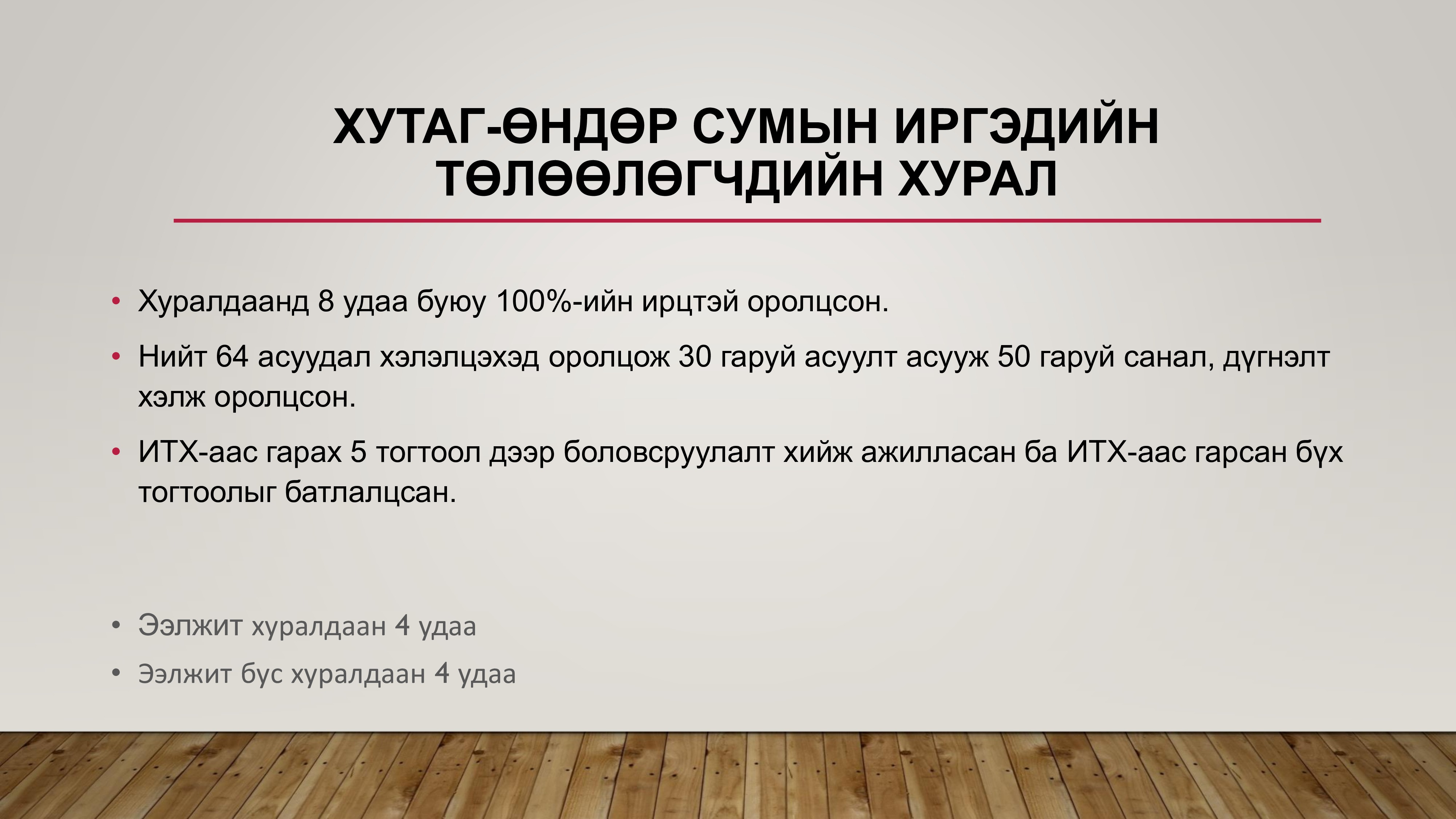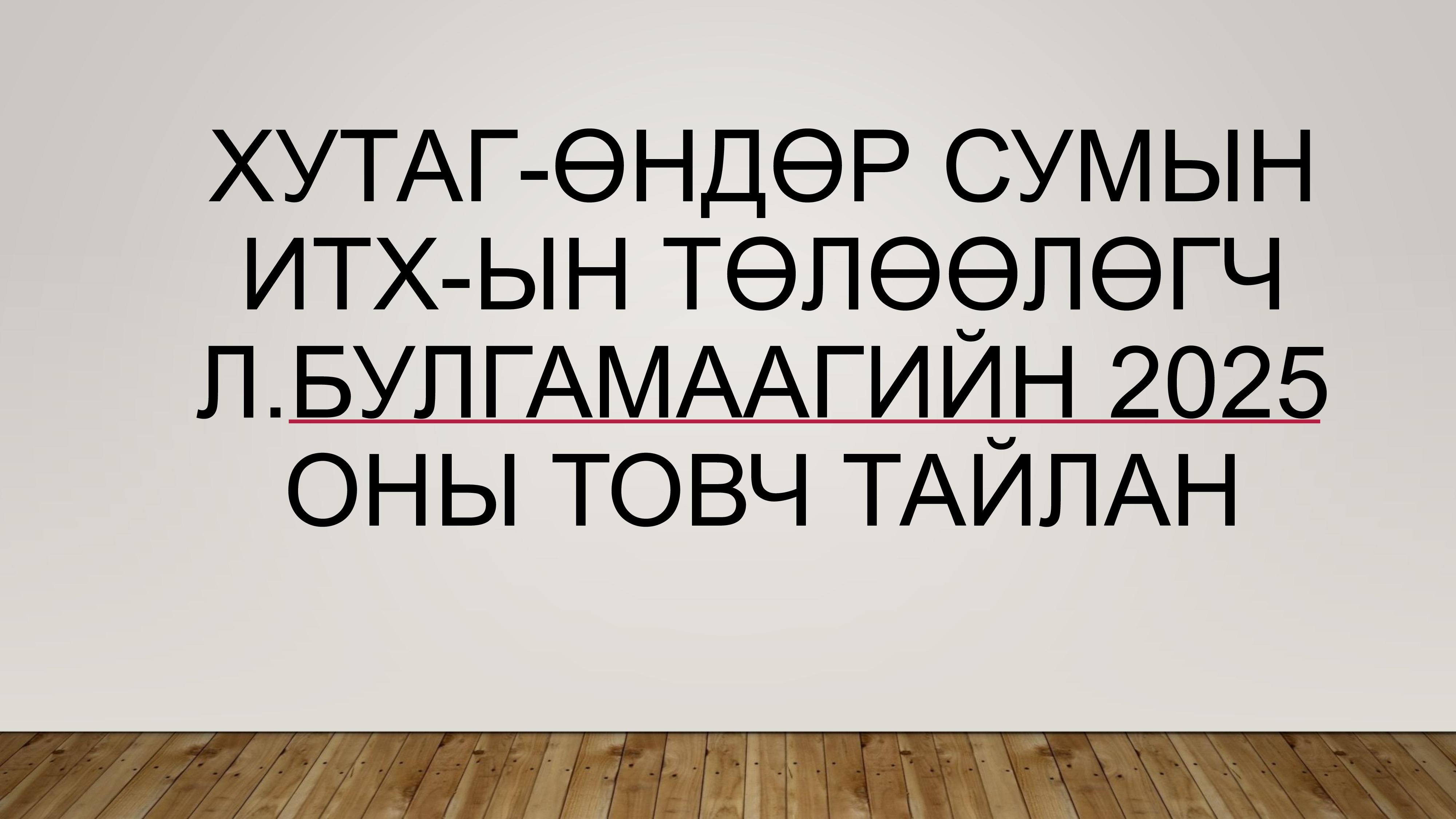 ХУТАГ-ӨНДӨР СУМЫН ИТХ-ЫН 1-Р БАГААС СОНГОГДСОН ТӨЛӨӨЛӨГЧ Л.БУЛГАМАА 2025 ОНЫ ТАЙЛАН ЦУВРАЛ-1