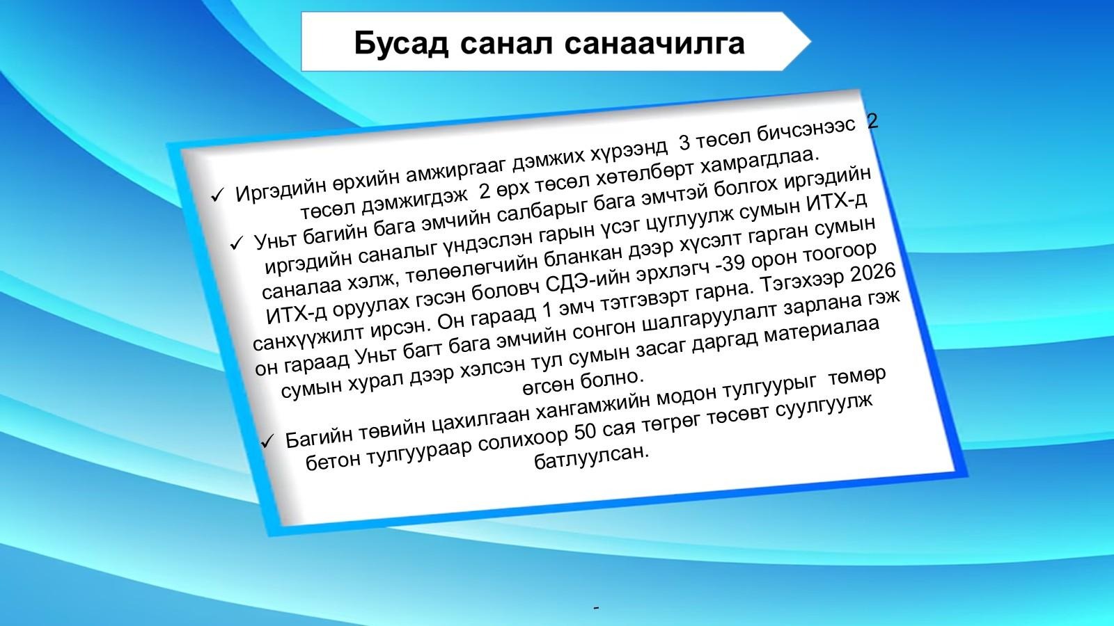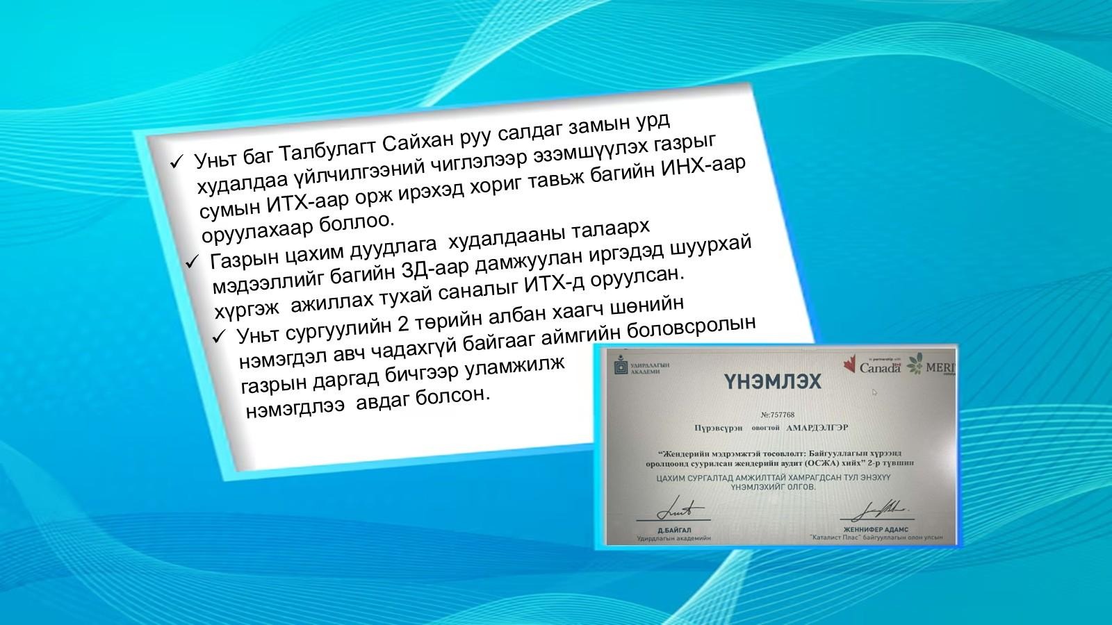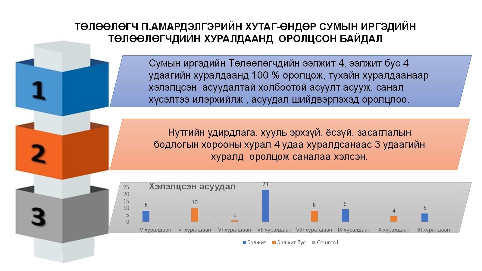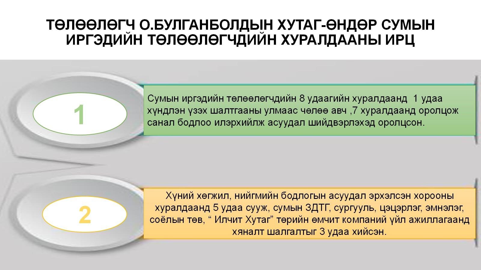 ХУТАГ-ӨНДӨР СУМЫН ИТХ-ЫН 3-Р БАГААС СОНГОГДСОН ТӨЛӨӨЛӨГЧ П.АМАРДЭЛГЭР, Б.БУЛГАНБОЛД НАРЫН 2025 ОНЫ ТАЙЛАН ЦУВРАЛ-4